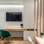 Rentplanet - Apartamenty Jagielly is furnished with a writing table and features amenities like air conditioning, along with a flat-screen TV with satellite channels. A highlight of this property for guests is the presence of a hairdryer, guest toiletries, and bath sheets in the bathroom. A shower can also be found.